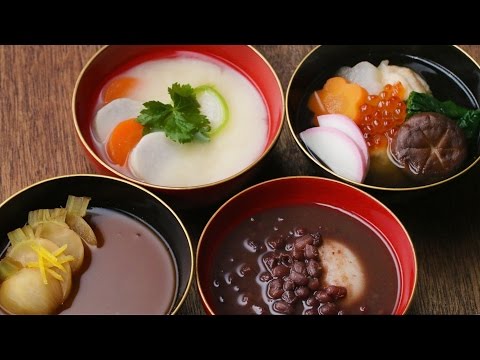 ぜひ作ってみてくださいね! 00:00 すまし仕立て雑煮 00:32 白味噌仕立て雑煮 00:59 あずき汁雑煮 01:21 赤味噌仕立て雑煮 4種のお雑煮 各4人分 すまし仕立て雑煮 材料: ...